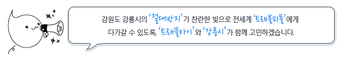 동해안의 절경과 향토문화가 배어있는 강원도 여행의 메카, 강원도 강릉시. 특히 청춘들의 여름 휴가지로 인기 있는 경포해수욕장은 넓은 백사장 뒤로 둘러쳐진 송림 병풍으로 색다른 해변의 멋을 선사한다. 정동진의 수령 30년의 해송 역시 이미 잘 알려져 있다. 소나무 숲을 빼놓고는 강릉이 표현되지 않을 정도로 소나무 숲이 잘 보존되어 있는 강릉은 심지어 수많은 유적과 고택들 사이에서도 소나무숲이 있다. 사계절 언제 찾아도 해풍으로부터, 또는 오대산으로부터 불어오는 솔향을 오감으로 느낄 수 있는 곳이 바로 강릉이다.