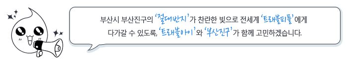 울창한 숲과 사시사철 푸름을 간직한 아름다운 황령산 기슭에 꽃무늬가 새겨진 세계 최대의 구상반려암과 800년 넘도록 꽃피워온 배롱나무(천연기념물 168호)는 부산진구만의 자랑이다. 서면거리에는 젊음의 열기를 따라 희망이 넘실대고, 다른 한편에서는 부산 대표 사찰 삼광사, 광명사 등 선인들의 숨결도 느낄 수 있는 곳이 바로 부산진구이다. 부산의 중심, 앞서가는 부산진을 가리켜 ‘새천년의 삶터’라 말하는 것도 바로 이 때문일 것이다.