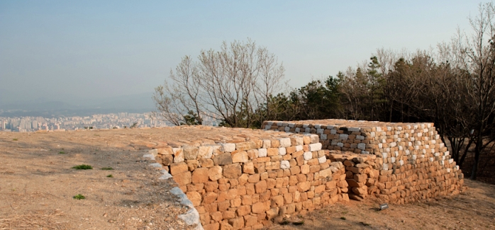 아차산의 성곽과 함께 조망하는 광진구의 풍경이 이채롭다.