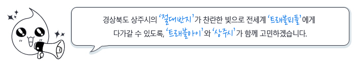 상주는 다른 도시보다 빠른 20세기 초부터 부유한 농촌환경을 바탕으로 자전거가 도입되었다. 총 면적은 1,254.82㎢로 서울의 두 배를 넘지만 매끄럽고 평탄한 농경지대로 상주는 자전거 교통 이용률이 유럽이나 일본과 같은 선진국과 맞먹는 수준이다.