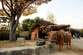 영주 선비촌에서는 소달구지 체험을 해 볼 수 있다.