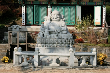 대광명전 앞 포대화상의 웃음이 정겹다.2