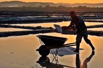반면 동주염전은 하얀 소금에 햇살이 부딪히는 광경이 색다른 만큼 낮에 가기를 추천한다. 바닷물을 가두어 증발시키며 하얗게 피어나는 소금은 미네랄을 가득 함유하고 있기로 유명하다. 특히 소금이 생성되는 속도는 느리지만 미네랄 함량이 높고 염도는 적어좋은 품질로 유명한데 그 이유는 갯벌에 장판을 까는 것이 아니라 옹기를 깨트려 박은 깸파리판 위에서 만들어졌기 때문. 한층 느리지만 자연과 함께 호흡하며 만들어지는 소금밭이기에 더욱 빛이 난다.