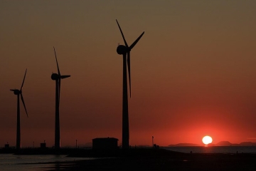 탄도 바닷길에서 볼 수 있는 풍력발전기와 노을의 조화