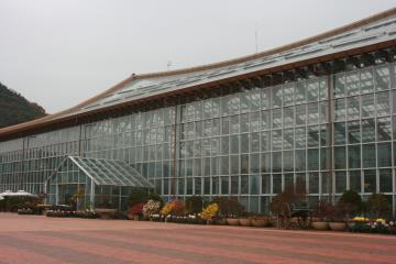 유리로 만들어진 한옥 모양이 신기한 우리꽃 사계절관.