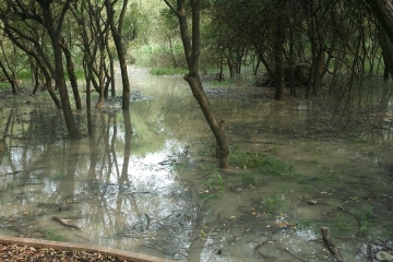밀물일 때는 버드나무 사이로도 물이 꽉 차지만 말똥게가 진흙 사이로 길을 내 버드나무 뿌리도 숨 쉴 수 있다.