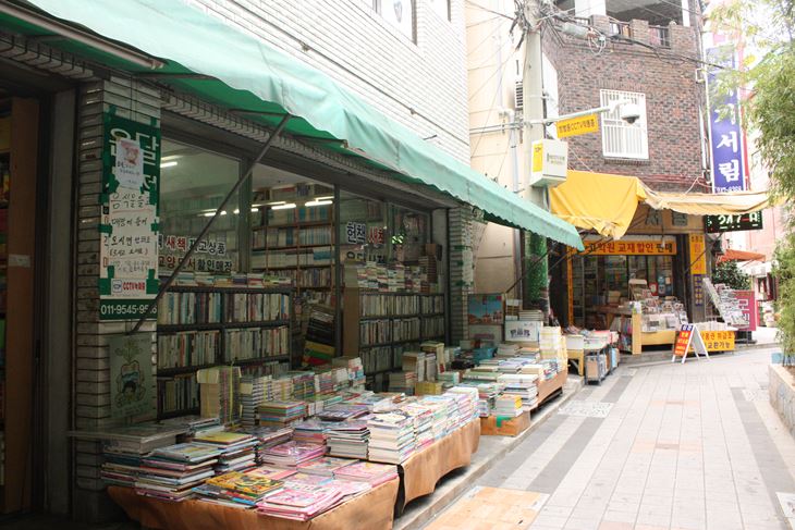 한쪽에서는 허리가 굽은 할아버지가 책을 정리한다. 백열등 하나가 작은 책방을 밝힌다. 이곳에서는 선풍기 하나와 부채 하나로 더운 여름을 이겨낸다. 수십만 권에 책들로 다리를 뻗을 수도 없을 만큼 좁은 공간이 됐다. 한사람이 겨우 지나갈 수 있을 것 같은 미로 같다. 정감 가고 따뜻한 분위기의 책방 앞에는 앉아서 책을 읽을 수 있도록 그림이 그려진 귀여운 의자가 있다. 닫힌 책방마저 볼거리를 제공한다. 대부분의 책방에 그라피티를 해서 문이 열려있으면 책을 구경하고 문이 닫혀 있어도 그림 구경 정도는 할 수 있다. 꽤 큰 규모의 책방이 있다. 우리글방 서점으로 들어가면 지하로 연결된 계단이 나온다. 부산의 이곳저곳을 그려 놓은 엽서들이 걸려 있다. 미로 같은 책방의 구조의 예측할 수 없는 공간이다. 책으로 가득 차 있다.
