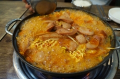 경기 의정부시에서는 의정부 부대찌개 거리를 만날 수 있다.서울부터 훑어 내려가자면 종로구의 선지해장국과 은평구의 감자탕을 먼저 소개해야 하겠다. 두 음식 모두 전국적으로 많이 먹는 음식인데 왜 하필 종로구와 은평구의 이름을 붙이는가 하니, 종로구에는 청진동 해장국 골목이, 은평구에는 응암동 감잣국거리가 있다. 80여 년의 역사를 가지고 있어 우리나라 근현대사와 함께 한 음식 거리로 비견되는 청진동 해장국 골목의 명성도 자자한데, 응암동 감잣국거리는 감자탕이 태어난 곳이라 하니, 돼지로 우려낸 진한 국물 맛을 보고 싶다면 응암동을 찾지 않을 수 없겠다. 같은 맥락에서 의정부 부대찌개 거리 또한 추천하지 않을 수 없는 곳. 이 거리에 있는 음식점 중 한 곳에서 미군부대에서 흘러나온 소시지를 우리 입맛에 맞게 끓여낸 것이 부대찌개가 되었으니, 부대찌개의 고향이 의정부 부대찌개 거리이다.