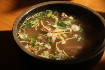 나주 곰탕의 진하디 진한 맛을 무엇에 비견할 수 있으랴.남부 지방으로 내려가 보자면 흑염소탕, 그리고 곰탕을 소개할 수 있겠다. 흑염소탕은 전라도와 경북 지방에서 즐겨 먹는 음식. 지역에 따라 약간의 차이가 있기는 하나, 된장을 풀어 끓인 물에 염소고기를 삶아내고 여기에 다시 갖은 채소류와 들깨가루 등을 더하는 방식은 비슷하다. 영양이 가득한 흑염소탕은 여름철에는 보양식으로 사랑받는 음식. 겨울의 허한 몸과 기운을 북돋워주는 데에도 흑염소탕이 톡톡히 한 몫을 해낼 것이다. 소의 뼈로 끓여낸 육수에 사태와 양지머리 등을 얹어 내어 놓는 곰탕은 마산, 부산 등에서 모두 즐겨 먹는 음식이나 전라남도 나주시의 나주곰탕이 가장 유명하다. 나주시 중앙동에는 곰탕골목이 있으니 이곳을 찾는다면 곰탕 맛의 진수를 온몸으로 느낄 수 있을 것이다.