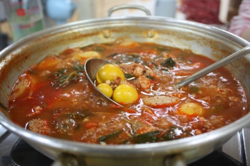 용현동 물텀벙이 거리는 오랜 시간 동안 많은 사랑을 받아 온 곳이다.경상남도 지방과 부산 기장군 등에서 유명한 멸치찌개 또한 바다의 얼큰한 국물 맛을 자랑한다. 생멸치를 듬뿍 넣어 우려내는 국물은 끓일수록 점점 더 진해지니, 그 매운맛에 중독되어 매해 멸치찌개 맛을 보러 오는 사람들도 상당하다. 인천과 마산의 아귀요리 또한 유명한데, 아귀를 국물 요리로 즐기고 싶다면 인천으로 가 보는 것이 좋다. 마산의 아귀요리는 아귀를 말려 쪄내는 아귀찜이 주를 이루기 때문. 인천에서는 생아귀를 이용한 아귀탕을 주메뉴로 삼고 있다. 인천에서는 오래전부터 아귀를 ‘물텀벙이’라 불러 왔으니, 인천광역시 남구의 용현동에는 물텀벙이 거리를 찾는다면 아귀탕을 제대로 맛볼 수 있을 것이다.