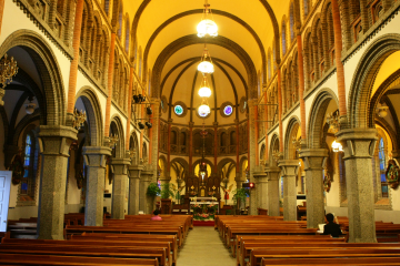 묵직하면서도 경건함이 느껴지는 내부는 전동성당의 진면목을 보여준다.