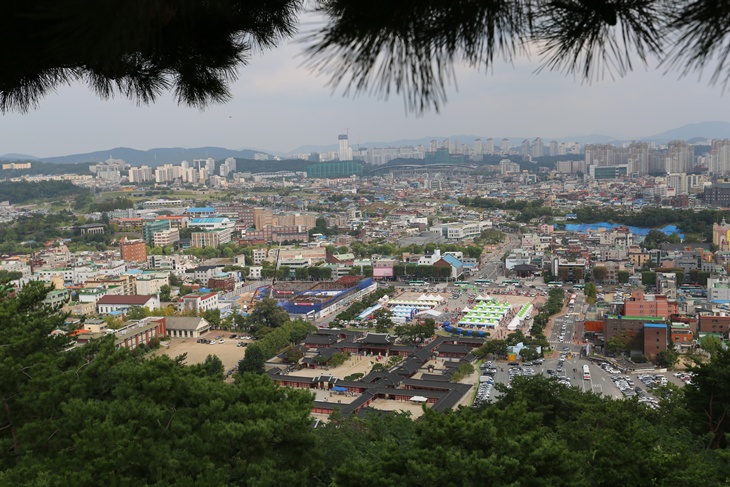 서장대에 올라 수원시내를 내려다볼 수 있다.