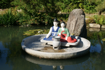 광한루원에 춘향과 몽룡을 나타내는 조형물이 설치돼 있다.