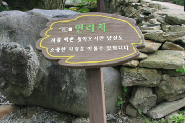 산막이옛길 초입에 연리지를 알리는 안내판이 세워져 있다.