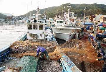 봄마다 멸치 축제가 열리는 부산 기장군 대변항에는 사람들로 북적인다.