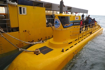 마라도 인근의 바다속을 탐험할 수 있는 잠수함의 노란색 외관
