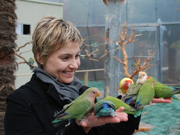 한림공원에서 앵무새 먹이주기 체험 중인 외국인 관광객