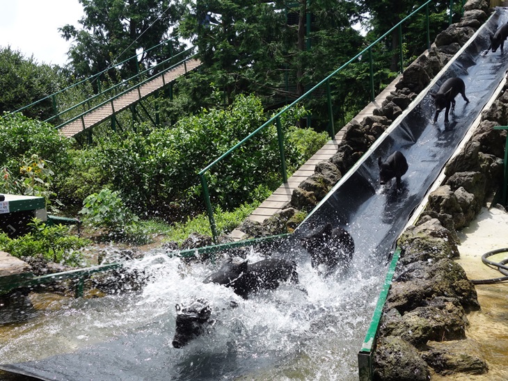 • 휴애리 자연생활공원의 유명인사, 아기 흑돼지들이 먹이를 향해 미끄럼틀을 내려오고있다.