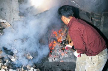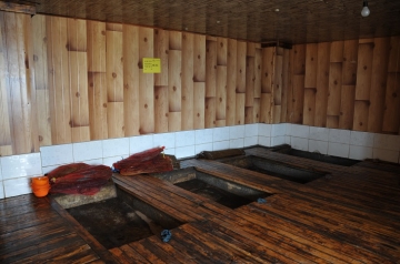 해수찜은 유황석과 참나무 장작을 달궈 해수안에 집어 넣는다.
