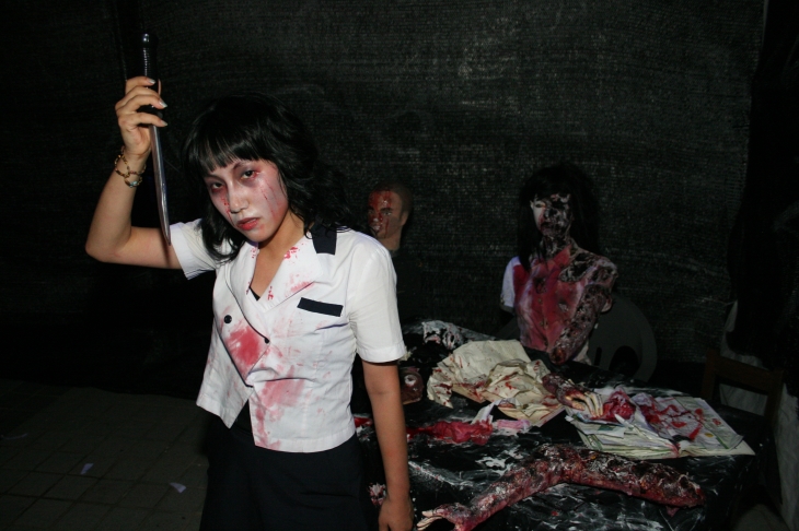 심장 약하면 참석 금지! 호러연극제에서는 깜짝 놀랄만한 분장과 함께 밤도 샐 수 있을 것 같은 무서운 연극이 펼쳐진다.