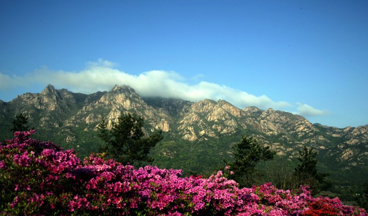 월출산의 봄 풍경. 기암괴석과 봄꽃이 어우러진 풍경이 아름답다.