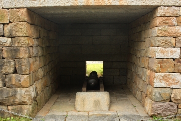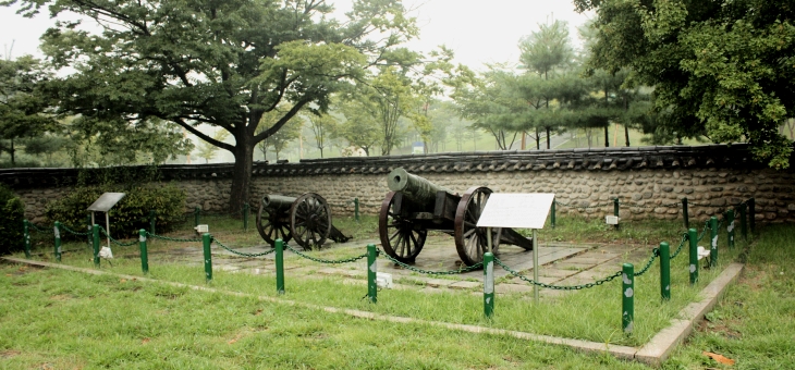 논현포대에서는 두 개의 포좌에 포가 서 있는 모습을 볼 수 있다.
