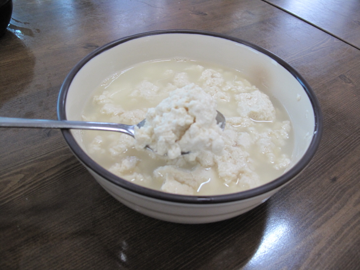두부를 만드는 과정은 간단하지만, 맛을 제대로 내기 위해서는 섬세한 손길과 많은 정성이 필요하다. 우선 품질 좋은 해콩을 불려야 하는데, 여기서부터 시간이 중요하다. 두부 만드는 시간을 어떻게 관리하느냐에 따라 맛이 달라지기 때문이다. 보통 여름엔 6시간, 봄가을에는 8시간, 겨울에는 12시간 정도 불려 사용한다. 불린 콩을 맷돌에 갈고 천으로 거른 콩물을 다시 가마솥에 부어 장작불로 30분 정도 끊인다. 이때 바닷물을 부으면 단백질이 엉기며 순두부가 완성된다. 바닷물 양이 맛을 크게 좌우하는데, 집집이 전해오는 비법이 모두 다르다.