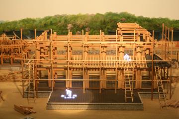 백제의 건물의 축조 장면이 미니어처로 전시되어 있다.