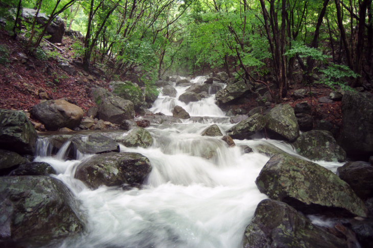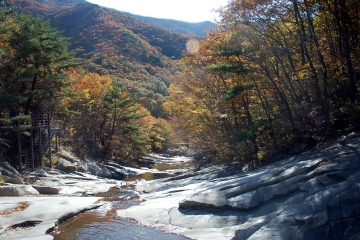 얼음골 계곡은 항상 시원한 물이 흘러 더위를 누그러트리는 곳이다.