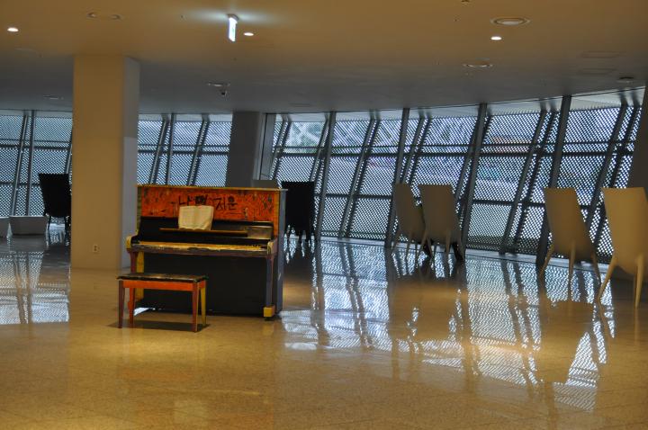 단순히 세련된 공간을 디자인한 곳이 아닌 외관부터 그 상식을 파기하며 지어졌다. 외관의 형태가 그러하니 내부 또한 평범한 사각형의 공간은 없다. 어느 곳을 돌아보아도 2~3가지 이상의 심미적 경험을 할 수 있도록 구성되었다. 화장실 입구의 깔끔한 의자 위로 은은한 음악이 흘러 앉는다. 구부러져 휘는 넓은 복도는 의자 몇 개로 개인적인 사유의 공간이 된다. 특별히 놀라웠던 장소를 꼽자면 넓은 홀 중앙에 덩그러니 놓여있는 피아노와 피아노를 등지고 있는 의자들이었다. 굳이 들어줄 필요가 없음을 의자의 방향으로 말해주었고 누구나 와서 틀려도 되는 연주를 할 수 있는 피아노임을 말해주는 이 공간은 연주하는 이도 듣는 이도 자유로웠다. 현재 가끔 나타나는 피아니스트들의 연주를 통해 뜻하지 않은 귀 호강을 얻을 수 있는 공간이 되었다.