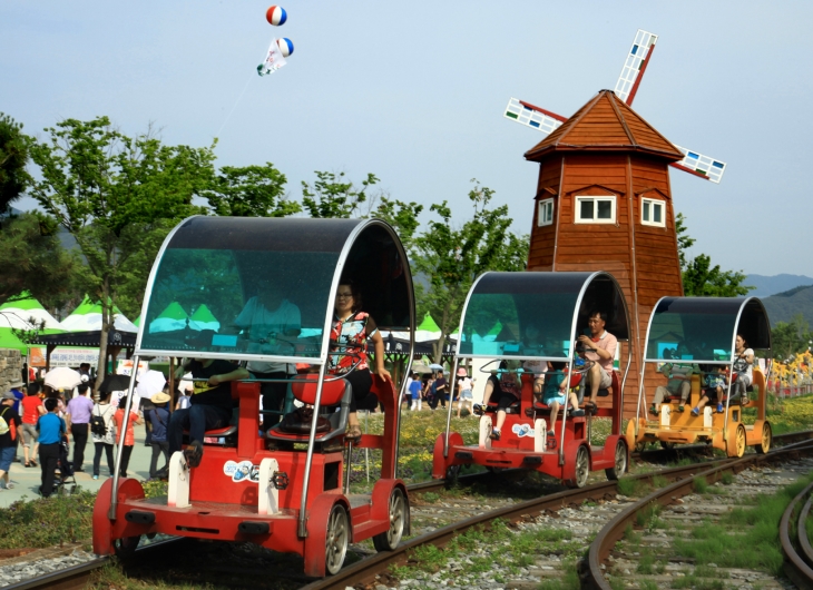 화사한 날씨 속, 레일바이크 타고 시원한 드라이브를 즐겨볼까?